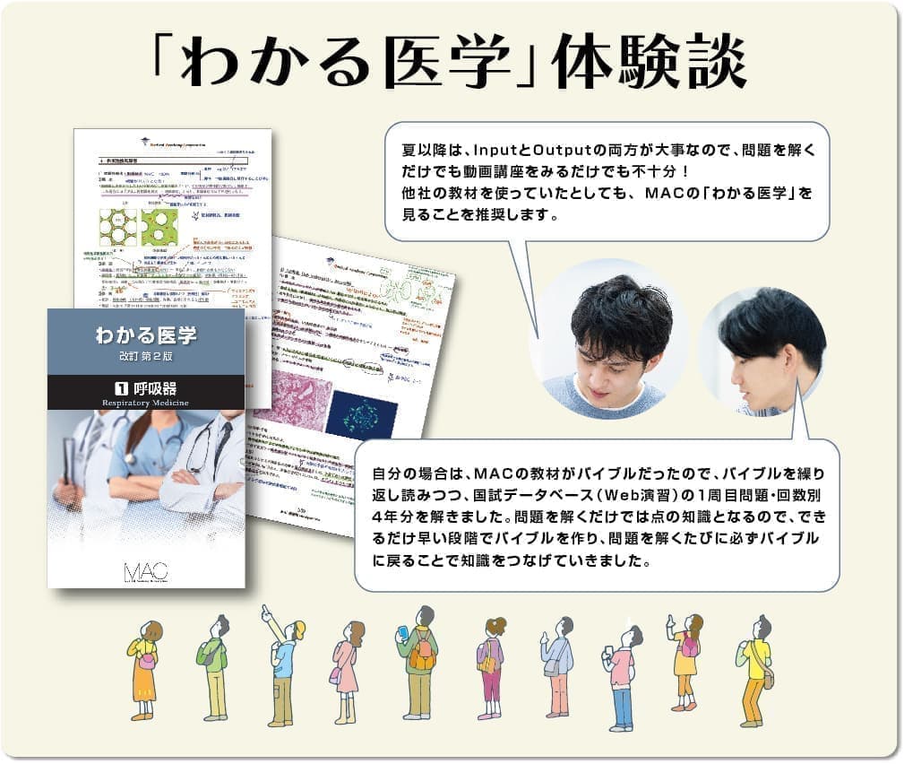 本を読んでも理解するのが難しく、自分は医師に向いていないのではと落ち込む毎日でしたが、MACの「わかる医学」無料講座を視聴して目から鱗が落ちました。分かりやすく「医学とはこういう風になっている」と教えてくださる先生に出会えて心から感動しました。