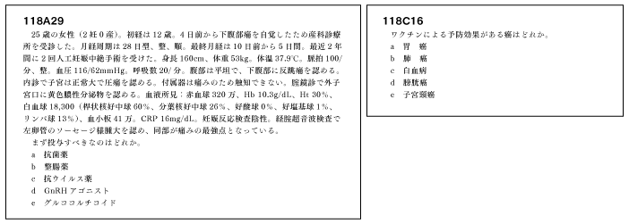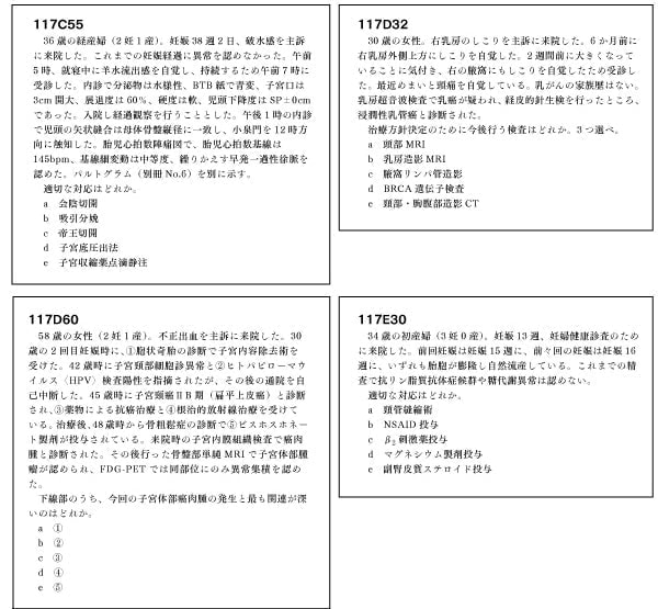 産婦人科問題に関してはオーソドックスな問題と新しいようなタイプの問題がちりばめられていた。 昨年は卵巣悪性腫瘍各論が複数問出題されて度肝を抜かれたが、今回は典型的な卵巣癌や子宮体癌、子宮頸癌の出題がなかった。