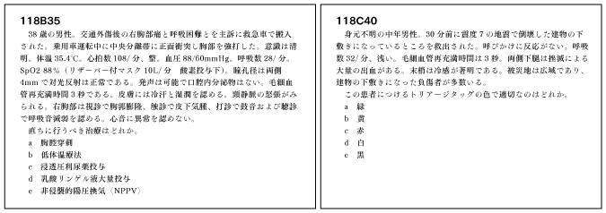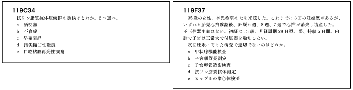 加えて、①:知識がなくても常識的に解ける問題、②:知識があるのに思いつかず解けなかった問題というのが本番で生じるが、①を増やして②を減らす訓練が必要である。①に関して、114D17(分娩合併症)や114D30(RAの生活指導)は産婦人科やリハ科の知識がなくても常識的に解ける。こうした問題が解けないなら、上述したように仲間と学習して自分の性格的な癖に気づいて修正する必要がある。