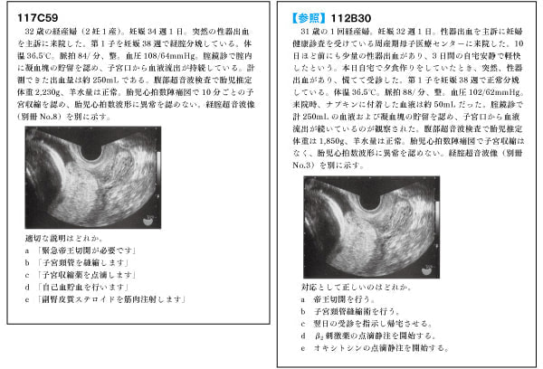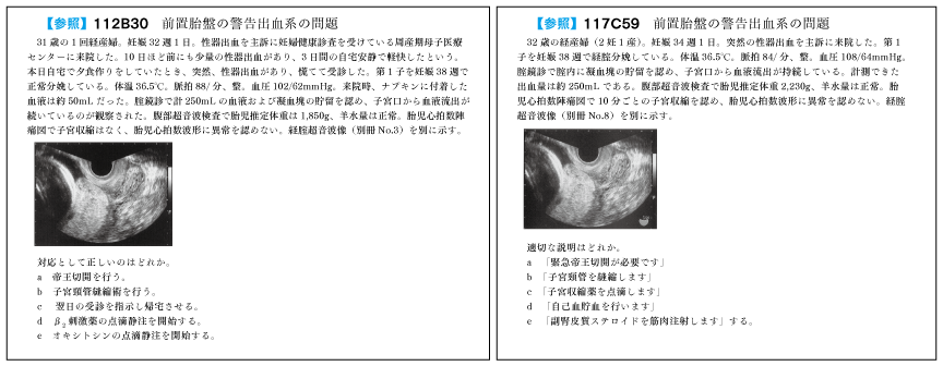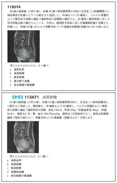 119D74と113A71【前置胎盤・癒着胎盤】(選択肢が同じ)
