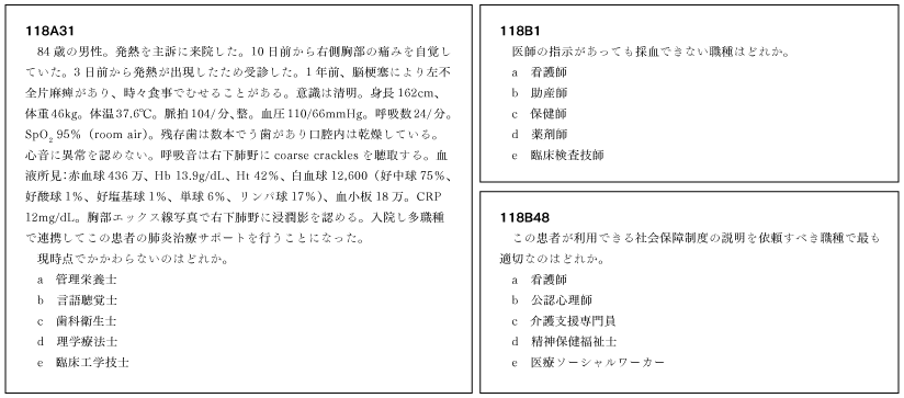 今回の医師国家試験では、医師または人として患者さんに対してどのように対応・行動するかという心を問う問題が少なくなっていた。少し寂しい気がするが、問題の分量配分の関係で仕方がなかったのかもしれない。