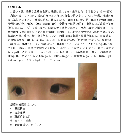 去年の総括では「外来診療での診断の助けになる問題が多い」と記載したが、今年も日常診療で役にたつ知識を問う問題が多かった。この傾向は臨床医としてはとても嬉しく思う。いくつかの問題を見てみたい。