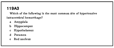 その原因はいろいろあるとは思うが、その1つはA問題のA3(高血圧性脳出血)だろう。例年、英語の問題は特に対策も必要なく、文章も難しくはない。今回のA3も『高血圧性脳出血が最もよく発生する部位はどこか?』という問いで、正解『被殻』を導き出すことも容易であった。だが、さて被殻の英語は?となった。
